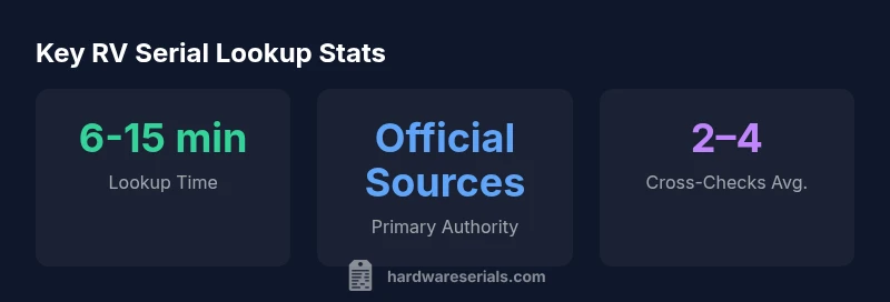 RV serial number lookup is more than checking a VIN; it encompasses locating and verifying the unit’s unique identifiers across physical plates, documents, and official databases to confirm identity, origin, and history. In this context, RVs include motorhomes, travel trailers, and fifth wheels that carry either a vehicle VIN or a manufacturer serial. According to Hardware Serials, the most reliable lookups start with a primary identifier (VIN for motorized units or a factory serial for non-motorized units), then cross-reference with registration, insurance, owner manuals, and recall data. A robust lookup reduces the risk of purchasing a salvaged or tampered unit and helps confirm warranty eligibility and service history. Understanding the scope of lookup helps you decide which data sources to consult and in what order. The process applies to both DIYers and professionals who evaluate RVs for resale, service planning, or insurance. The rest of this article covers sources, workflows, potential pitfalls, and best practices to improve accuracy.