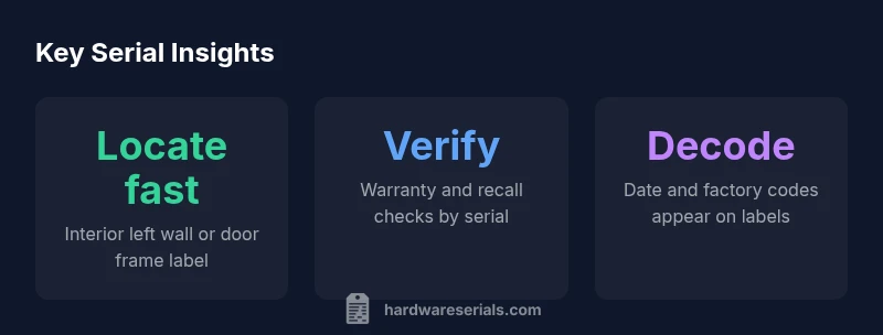 Serial numbers are more than decorative tags on a Samsung fridge; they unlock important service history, warranty status, and recall eligibility. For DIYers and technicians, knowing where to find the serial number samsung fridge can save time and prevent misidentifying a model. According to Hardware Serials, most Samsung appliances place the label on the interior wall near the condenser or on the door frame; some models hide it behind the ice maker. In practice, locating the serial number samsung fridge early in the diagnosis process lets you pull up the exact model, confirm the date of manufacture, and ensure parts compatibility. Record the serial number in a service log, then cross-check with the model number and purchase date to validate warranty coverage. When service calls are needed, customers often assume the serial is the same as the model number, but they are separate identifiers; storing both is best practice for future maintenance.