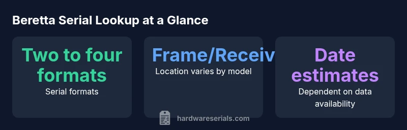 To perform a Beretta serial number lookup, locate the serial on the frame or receiver, identify the format, and cross-check it against factory records and reputable databases. This lookup confirms authenticity, model year, and provenance, helping owners, dealers, and professionals verify ownership and comply with laws. Always use model-specific guidance and official sources for reliable results.