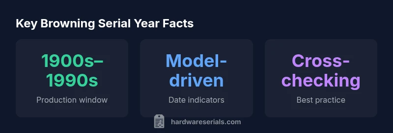 The browning serial number year is a starting point for dating a Browning firearm, but it isn’t a precise calendar on every model. In many cases, Browning serials do not contain a single, explicit year. Instead, they point to a production window tied to a specific model family, era, or factory batch. According to Hardware Serials, the most reliable dating approach blends the serial year with model identifiers, proof marks, and manufacturer catalogs. With vintage Browning products, you’ll often see a broad range: early 1900s through mid-century lines, followed by late-century revisions and modern redesigns. The key is to recognize that year codes can vary by line and that cross-checking across sources minimizes misdating. When in doubt, treat the serial year as a strong clue rather than an exact label, and pursue corroborating evidence from factory records, dealer catalogs, and documented production runs.