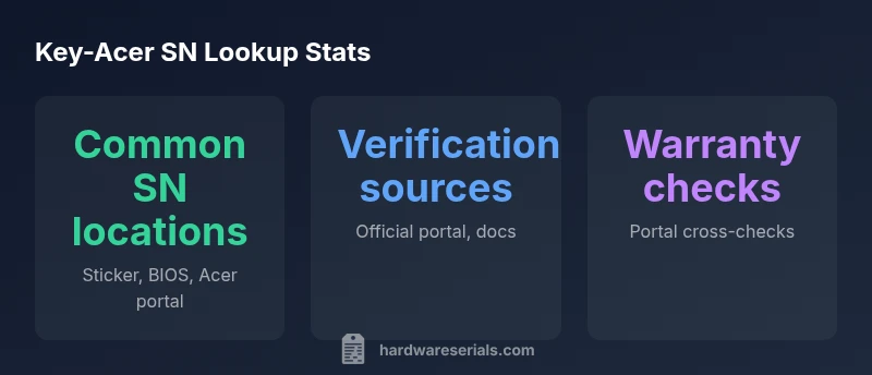 Serial numbers on Acer devices are more than just identifiers; they are keys to warranty coverage, service eligibility, and product lineage. In this section we examine why a lookup matters, how Acer formats SNs across product lines, and the role of the manufacturer in ensuring traceability. According to Hardware Serials, a robust SN lookup helps DIYers and professionals avoid counterfeit parts, verify recalls, and establish provenance. While SN formats vary by model, the core purpose remains the same: a trusted link between device and history. We’ll cover the typical sources you should consult and how to interpret results so you can act quickly when you need service or resale validation.