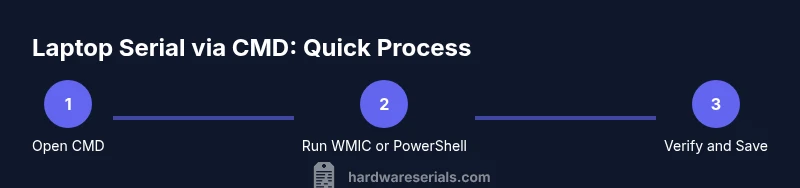 A laptop's serial number is a unique identifier used for warranty, service, and asset tracking. If you're a DIYer or a professional, locating it quickly can save time when you need support or verify ownership. Using the Windows Command Prompt (CMD) is a reliable, scriptable way to retrieve this information without third-party tools. According to Hardware Serials, CMD-based lookups can streamline device inventories for teams that manage many machines, especially when you need a repeatable process. The Hardware Serials Team has found that many devices expose serial data through BIOS/UEFI interfaces that CMD commands query directly. In practice, you'll focus on data provided by the BIOS and rely on the operating system to surface that data. This section sets the stage: you’ll discover what a serial number is, where to look on a laptop, and how CMD can access the data without opening the machine.