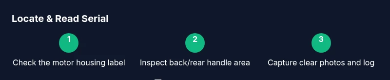Use the model number along with the serial to verify warranty status on DeWalt’s official site or through authorized distributors. This cross-check confirms the tool is within coverage and helps with recall notifications if applicable.