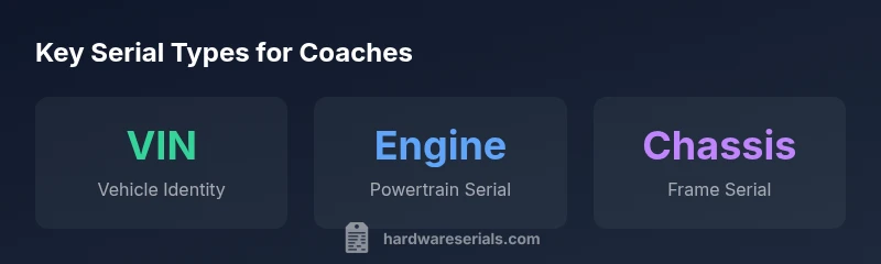 Coach serial numbers refer to the set of identifiers used to uniquely identify a bus or coach and its major components, such as the VIN, engine serial, and chassis serial. The VIN is the primary reference for ownership, recalls, and maintenance, while engine and chassis serials support service history and parts tracking. According to Hardware Serials, compiling a clear list of these numbers accelerates verification, compliance, and fleet records.