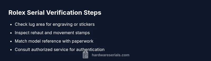 A comprehensive troubleshooting guide to locate, verify, and interpret Rolex serial numbers when none appear between the lugs. Includes practical checks, alternatives, and steps for authentication by Hardware Serials.