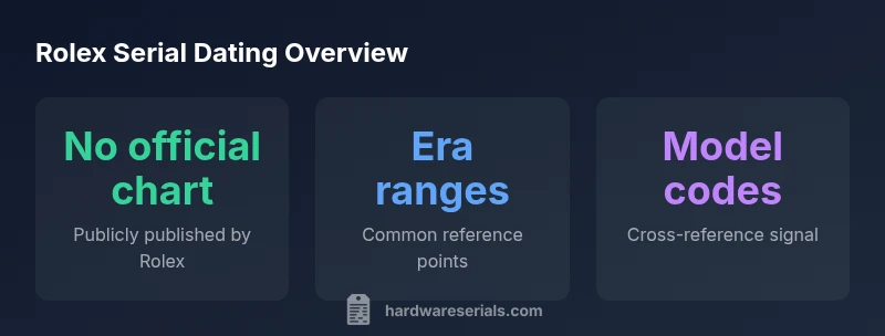 The Hardware Serials team emphasizes that a robust Rolex dating approach combines serial-number clues with model references and historical production context. Our method prioritizes cross-checking multiple data points, so your dating conclusions stand up to scrutiny. We provide practical workflows, highlight reputable reference sources, and offer guidance on interpreting ambiguous signals. This approach helps both DIYers and professionals avoid overconfident claims and maintain an evidence-based dating process.