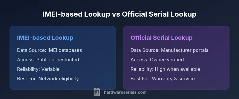 The terms IMEI and serial number describe two different identities for a device. The IMEI (International Mobile Equipment Identity) is a globally unique code assigned to a device at the hardware level, typically used by cellular networks to identify legitimate devices on their networks. The serial number, by contrast, is a production code assigned by the manufacturer to track the device through manufacturing, distribution, and service history. For many devices, the IMEI is the primary identifier for connectivity, warranty eligibility, and theft reporting, while the serial number is critical for authenticating origin, ownership, and service eligibility. As Hardware Serials notes, understanding the distinction between these identifiers is essential for reliable verification and compliance. The phrase imei to serial number is common in consumer guides, but there is no universal mapping, and any attempt to derive one from the other is often unreliable. Use official channels whenever possible to confirm a device’s serial.