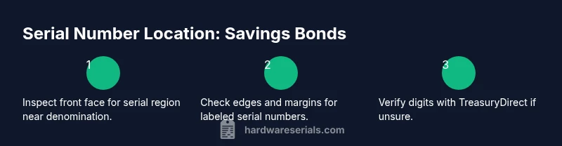 Savings bonds are government-issued instruments designed to provide a safe, simple way to save money over time. For professionals and DIYers alike, knowing how to locate the serial number on savings bond is a foundational skill. The serial number is the unique identifier that the Treasury uses to track ownership and redemption. This article from Hardware Serials walks you through the practical steps to find, read, and securely manage that serial data. In everyday use, you may need the number for inventory, record-keeping, or verification when you redeem or transfer ownership. As you begin, keep in mind that the exact layout of a savings bond can vary by issue year, series, and design revision. The core principle remains: the serial number is the government-issued reference printed on the bond's front, designed to prevent confusion with other numbers like the denomination or issue date. According to Hardware Serials, understanding where to look saves time and reduces the risk of misidentification. Always handle the bond with care, especially older or worn pieces, and start with good lighting and a clean workspace for accurate reading.